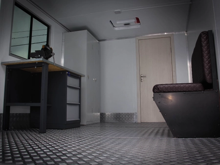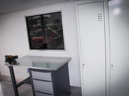 У відсіку вмонтований стаціонарний металевий верстак з шухлядами та слюсарними лещатами, шафа для одягу 1 од., рундук - 1од. та ручний інструмент, а саме: кутова шліфувальна машинка, шуруповерт, гайковерт.