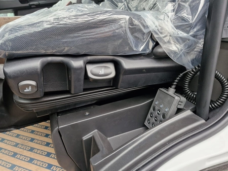 - Оздоблене тканиною сидіння водія з трьома регулюваннями з пневмопідвіскою
